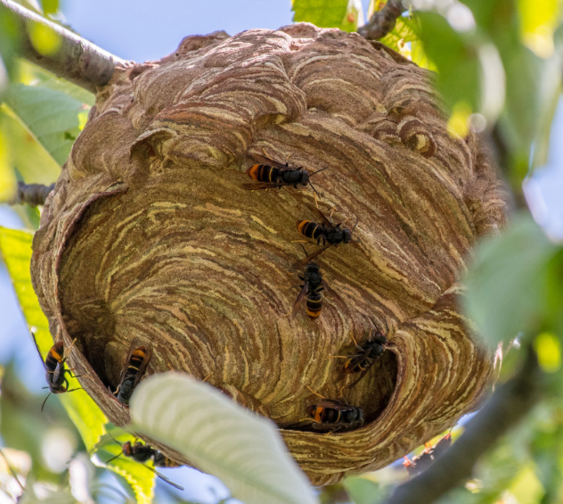Sinds een aantal jaar heeft de Aziatische hoornaar zich als invasieve exoot gevestigd in heel België. Deze hoornaar is vooral schadelijk voor honingbijen. Voor de mens is deze hoornaar niet gevaarlijker dan een Europese hoornaar. Je ziet deze hoornaar meer in stedelijk gebied, omdat ze hier vaker nestelen. Doordat het nest zelf ook groter is dan één van de Europese, is de kans groter dat u in aanvaring komt met deze hoornaar.