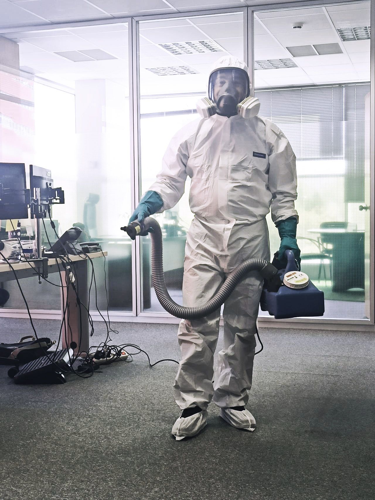 - Desinfecteer vooraf elk voorwerp / product dat uit het te behandelen ruimte is verwijderd.