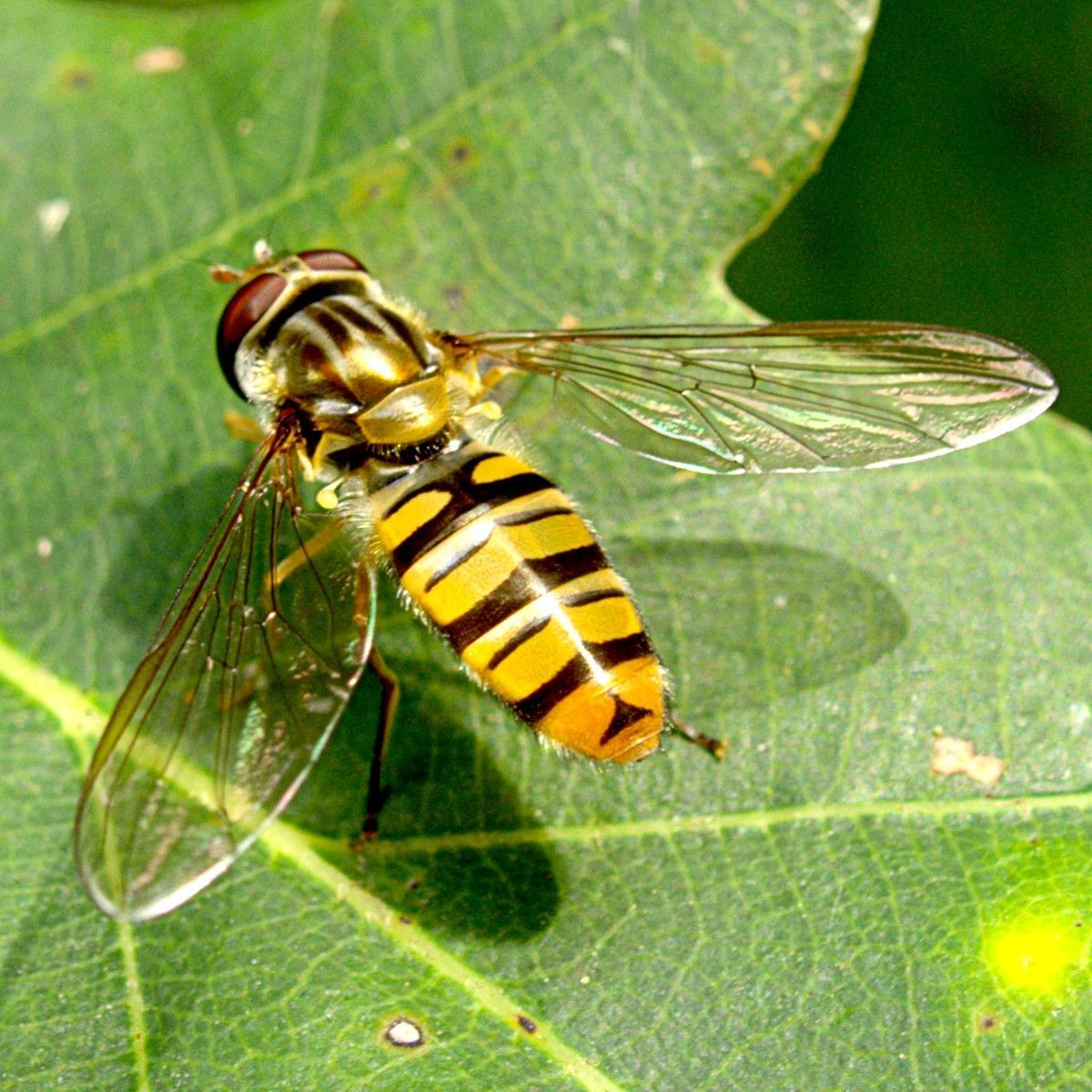 Les syrphes sont souvent confondus avec les abeilles ou les guêpes, mais ils sont inoffensifs. Ils n’ont pas de dard et ne peuvent donc pas piquer. Leur ressemblance n’est pas un hasard, mais relève du phénomène de mimétisme. Autrement dit, le syrphe imite la guêpe pour paraître plus dangereux auprès de ses ennemis naturels.