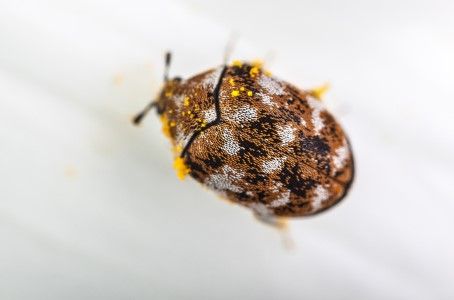 Het is de larve van de tapijtkever die de meeste schade aanricht, de volwassen kevers zijn onschadelijk en voeden zich met nectar en stuifmeel.